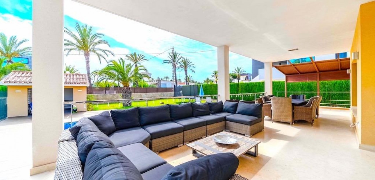 Cabo Roig, Villa of 1,095 meters plot and 477 m2 built housing with 5 bedrooms, 5 bathrooms, 2 toilets, living room, kitchen and pantry. Games room, machine room and sauna and 4 terraces. 10x5 private pool, barbecue. All homes are domotizadas, air conditioning, furnished to 300 meters from the beach