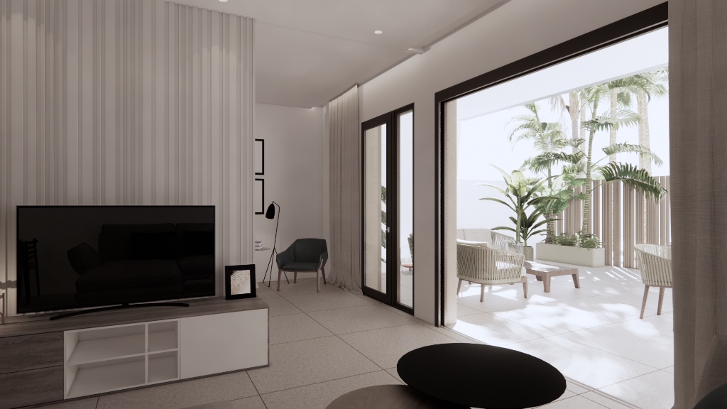 New build apartments for sale in a residential complex next to the nature conservation area of San Pedro del Pinatar. The ground floor apartment has 3 bedrooms, 2 bathrooms, living room, kitchen and a terrace. The residential complex a large communal swimming pool.It is located in a urban environment full of services that you can reach on foot, whitout the need for vehicles: shops, banks, cafes, pharmacies, restaurants, medical centers....San Pedro del Pinatar is a small Spanish town in the unique natural zone of the Mar Menor, which translated from Spanish means "Little sea". The Mar Menor is separated from the Mediterranean Sea by the sand split, a length of 12 km, by creating a special microclimate. The spa and treatment centres of Mar Menor are widely known in the Costa Blanca region and enjoyed by large popularity among the tourists. In 15-20 minutes you can reach the airport of San Javier, as well as the major cultural and historical centres such as Murcia and Cartagena.
