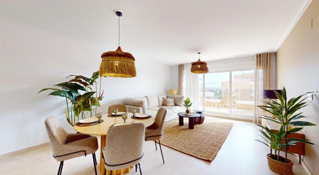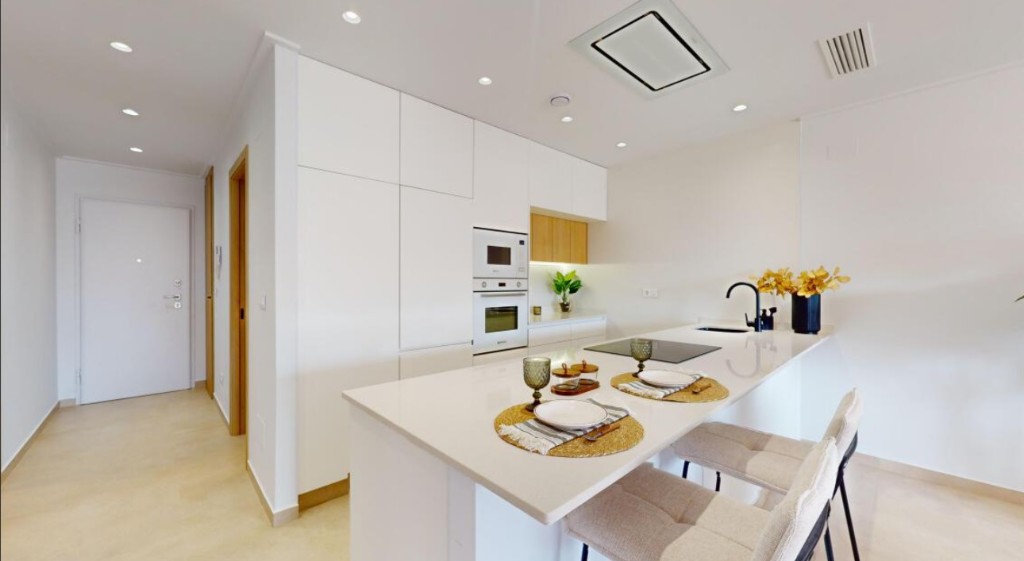 For sale new apartments in Guardamar del SeguraAll apartments are designed in a minimalist style and in accordance to high quality standards. Modern architecture is in perfect harmony with the surrounding nature, creating a unique and peaceful atmosphere for living and recreation.All apartments on the ground floor have a fully equipped open kitchen and a spacious living room, as well as terrace, as some apartments have a small beautiful private garden. The apartments consist of 3 bedrooms and 2 bathrooms, one of which is a suite.The apartments, which are located on the middle floor, also consist of 3 bedrooms and 2 bathrooms (one of which is a suite), an equipped open kitchen and a large bright living room. Each apartment has a underground parking space.The location of the apartments is ideal, next to the famous salty lagoon with its unique environment, the best beaches of the Mediterranean are only a few minutes away, as well as all the benefits of civilization. The residential complex is also equipped with all amenities: SPA, fitness, children's playgrounds, large green areas and a swimming pool.
