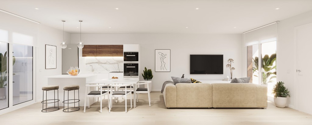 New build townhouses for sale in San JavierWe are pleased to offer new townhouses in San Javier, Costa Blanca South.Beautiful two levels townhouses with 2 bedrooms, 2 bathrooms, a bright living room and a kitchen. Each house has a garden area and swimming pool. This is a great area, close to the unique Mar Menor, a small sea resort, famous for its healing mud. In a few minutes the unique sandy beaches of the Mar Menor lagoon. Mar Menor - a natural saltwater lagoon separated from the Mediterranean Sea. Pure water of the Mar Menor is not deep and warms up rapidly, even in winter the temperature rarely drops below 18 degrees. Here you will find a well-developed infrastructure: supermarkets, shops, restaurants with fine Mediterranean cuisine, a variety of water sports, health clinics, schools and more.