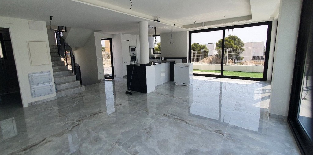 New build villa for sale in Finestrat.Sea view new build villa with 3 bedrooms, 3 bathrooms, large living room and kitchen, terrace, lovely outside garden with private pool and solarium.The construction works is carried out using only the highest quality materials and finishing works such as: double glazed aluminium windows, shower plates in the bathrooms, top quality porcelain used for the floor and interiors, air conditioning pre-installation and much more extras.New villa - located a few kilometers from the popular city of entertainment in Costa Blanca - Benidorm. Nearby you will find shops, supermarkets, banks, restaurants, schools. But if you want entertainment, then just a few minutes away golf, casinos, shopping malls, water parks, discos and much more great entertainment. Only 45 km from Alicante airport. Good choice to live in Spain all year around.