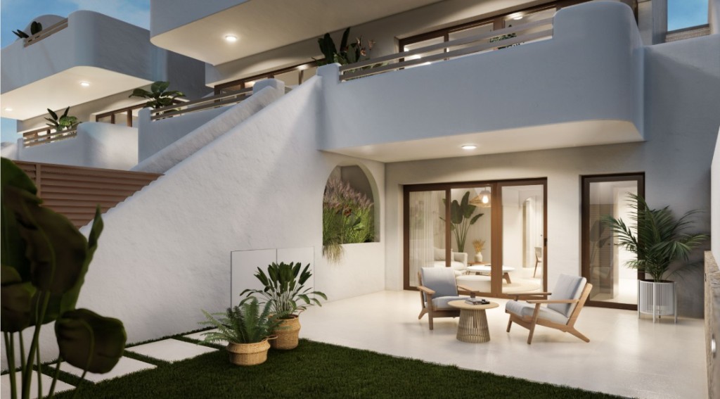 New build ground floor apartment in San Pedro del PinatarNew build property is located in a complex close to all amenities. Ground floor apartment has 3 bedrooms, 2 bathrooms with underfloor heating, living room, kitchen with white goods Bosch or Siemens, garden, private pool and parking.San Pedro del Pinatar is a great place to live and holiday, is located at the southernmost tip of the province of Alicante-Costa Blanca. In the area of infrastructure, all that is needed for life is in the near range of shops, restaurants, banks, schools, drugstores, gyms, beauty salons and spas. The large shopping centres, golf courses and plenty of fun for all ages. Nice choice to buy property in Spain.