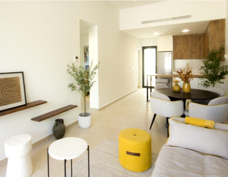 New apartments for sale in San FulgencioWe offer for sale 2 or 3 bedroom apartments in a new residential complex located in San Fulgencio.The apartment consists of a spacious living-dining room, open kitchen, 2 or 3 bedrooms and 2 bathrooms. Bungalows on the ground floors have large private terrace, on the upper - a huge solarium.Nearby is all the necessary infrastructure, bars, restaurants, pharmacies, shopping centers, and the purest blue beaches of the Costa Blanca - just in a few minutes drive.The nearest airport is Alicante, an half hour's drive away.San Fulgencio is a great area, located near the sea in the area of Guardamar del Segura and La Marina. The nearest sandy beach is only a few minutes drive away. Here you will find everything you need for a comfortable life. In a few minutes drive away there are natural parks of Torrevieja and the shopping malls, golf courses, parking for yachts and many other activities