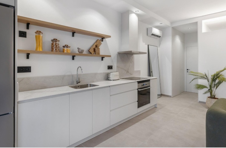 New build ground floor apartments for sale close to sea in Torrevieja.The new apartment is situated within walking distance to the beach 150 m in the exclusive area of the south of Costa Blanca.Apartment with 1 bedroom and 1 bathroom, dining room, open plan kitchen with appliances and terrace..Each apartment has been completely renovated with top-quality finishes and is delivered fully furnished and equipped. Features include:Designer furniture, lighting, curtains, televisions, and decorative itemsSplit-system air conditioning (heating and cooling) in both the living room and bedroomBathroom with vanity unit, mirror, and shower enclosure.Torrevieja is a tourist town on the Costa Blanca, a favorable climate and environmentally friendly nature with two salt lakes located within the city limits. The city stretches along the coast and therefore all the sandy beaches of the city are within walking distance. Infrastructure of the city perfectly developed. There are shopping centers, sports complexes, a nature preserve, many bars and restaurants.