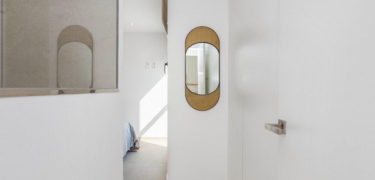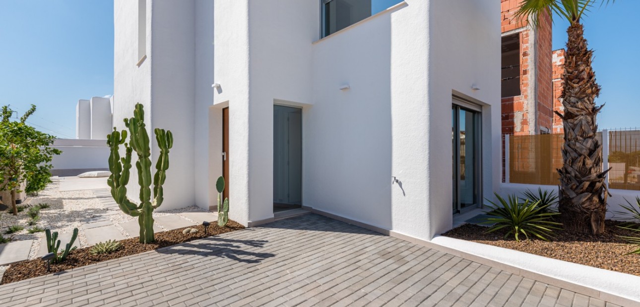 De urbanisatie bestaat uit 23 vrijstaande villa's in Ibiza-stijl. Villa Mykonis is verdeeld over 2 niveaus. Het gelijkvloers beschikt over een ruime woonkamer met open keuken, 1 slaapkamer met en suite badkamer en een berging. De 1e verdieping heeft 2 slaapkamers, 1 badkamer en een terras. Vanuit de woonkamer is er rechtstreekse toegang tot de tuin met terras, een autostaanplaats en een L-vormig privaat zwembad. Allemaal zijn ze zorgvuldig ontworpen om de ruimtes optimaal te benutten en worden ze afgewerkt met materialen van hoge kwaliteit.