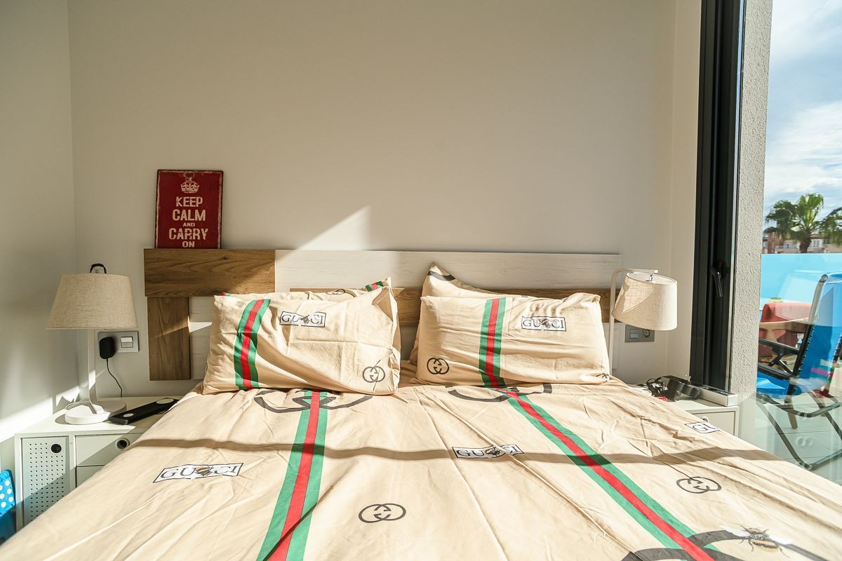 Modern appartement met 1 slaapkamer, terrassen en een eigen solarium. Dit stijlvolle appartement met 1 slaapkamer en 1 badkamer verkeert in uitstekende staat en is gelegen in een modern gebouw uit 2022. Het wordt volledig gemeubileerd verkocht met hoogwaardig meubilair en is direct te betrekken. De slaapkamer is voorzien van een ingebouwde kledingkast en een bed met praktische opbergruimte eronder. De lichte woonkamer heeft een comfortabele slaapbank, ideaal voor gasten of extra slaapgelegenheid. De volledig uitgeruste open keuken sluit naadloos aan op de woonkamer, waardoor een ruime en functionele indeling ontstaat. Grenzend aan de keuken bevindt zich een aparte bijkeuken met de boiler en extra opbergruimte. Dankzij de uitstekende ligging op het zuiden geniet de woonkamer de hele dag door van overvloedig natuurlijk licht, wat zorgt voor een warme en comfortabele sfeer. De meest opvallende kenmerken van deze woning zijn de twee terrassen en het volledig ingerichte privésolarium – perfect om te genieten van het buitenleven en de mediterrane levensstijl waar Spanje om bekend staat. Het appartement beschikt tevens over een eigen parkeerplaats en het complex biedt een gemeenschappelijk zwembad. Deze woning is niet alleen ideaal voor permanente bewoning, maar vormt ook een uitstekende investering voor verhuur dankzij de toplocatie – op slechts 700 meter van de stranden van Playa del Cura en Cala de la Palangre . Alle voorzieningen, zoals winkels, restaurants, supermarkten, het centrum van Torrevieja en het centrale busstation, bevinden zich op loopafstand, waardoor de woning zeer aantrekkelijk is voor zowel vakantie- als langetermijnverhuur. Neem vandaag nog contact met ons op om een bezichtiging te regelen of meer informatie aan te vragen. Woningen op deze locatie en in deze staat zijn zeer gewild.