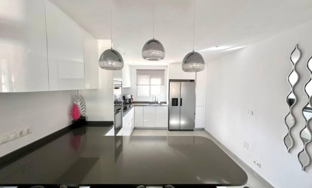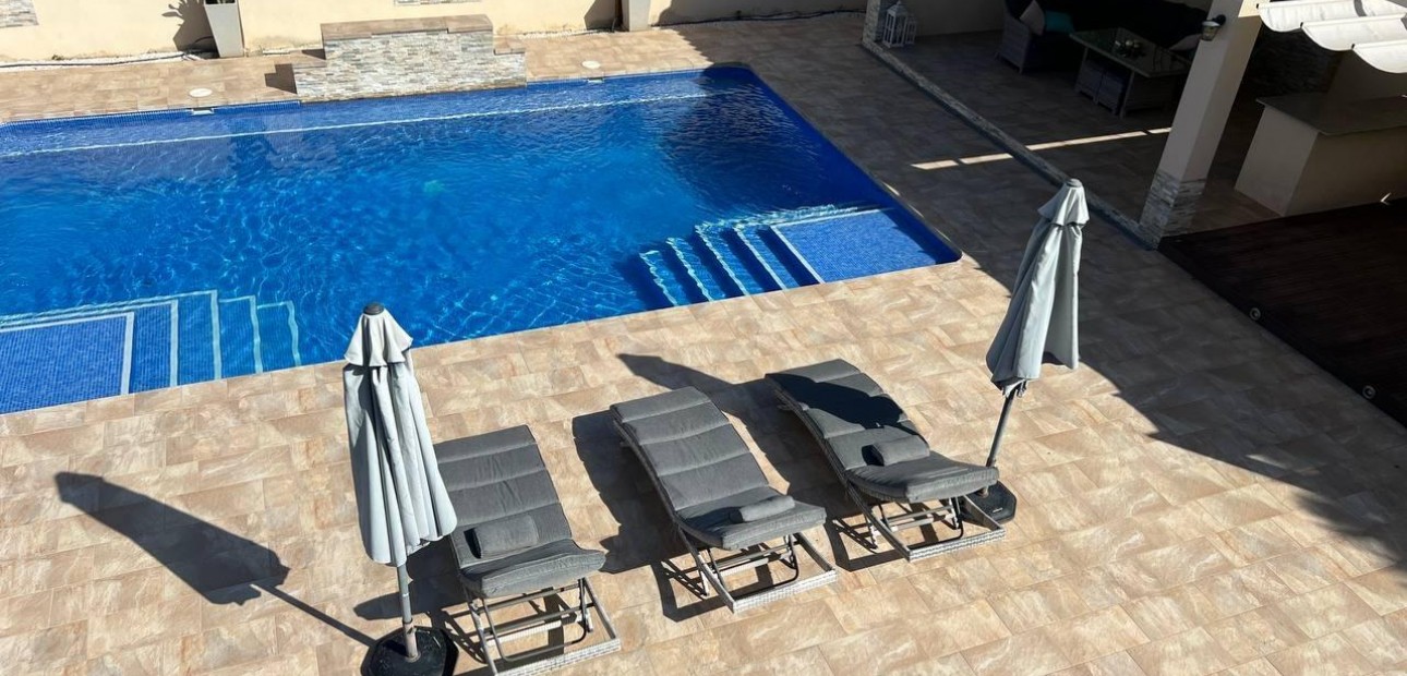 Estamos encantados de presentar esta villa independiente premium de 6 dormitorios y 4 baños completamente renovada que ha sido diseñada con elegancia y acabados de alta calidad, conservando algunas de las características y el carácter originales de la propiedad.~~Esta casa de una sola planta tiene una superficie construida de 344 m² y se encuentra en una zona céntrica de 1300 m², en una zona tranquila de Lomas de Don Juan. A pesar de su ubicación tranquila, se encuentra a un corto paseo de numerosos restaurantes, bares, cafeterías y un supermercado, y muy cerca de todos los servicios, incluyendo dos prestigiosos campos de golf y las playas de Campoamor y Cabo Roig.~~Se accede a la casa a través de una gran terraza cubierta que da la bienvenida a un espacioso salón-comedor y cocina de planta abierta, repleto de luz natural. Desde el salón principal se accede a un dormitorio en suite, que actualmente se utiliza como sala de deportes independiente. Hay tres dormitorios más en el pasillo principal, todos con armarios empotrados y puertas francesas; uno de ellos se utiliza actualmente como despacho. Los dos dormitorios restantes tienen vistas a la piscina y a los jardines de la parte trasera de la propiedad y comparten un amplio baño con ducha a ras de suelo y bañera exenta.~~La extensa renovación interior se completó en 2024 con la instalación de una cocina totalmente equipada de alta calidad que incluye un frigorífico-congelador americano y un horno doble.~~La zona exterior trasera de la propiedad cuenta con una hermosa piscina privada de 9 x 6 m, además de un gran cenador de piedra con zona de bar, ventanales, TV y un gran toldo adyacente. Los jardines maduros están bien cuidados y requieren poco mantenimiento, y toda la propiedad está rodeada por un muro alto y sólido, lo que la convierte en un espacio de entretenimiento al aire libre muy seguro y privado.~~Esta casa familiar moderna, versátil y flexible también tiene el potencial de crear una unidad independiente de dos dormitorios y un baño con una sala de estar separada y un área de cocina/lavadero que ofrece un buen acceso externo y, por lo tanto, numerosas opciones.~~Todas las habitaciones cuentan con aire acondicionado independiente, y también hay una chimenea de gas en el salón principal para las noches más frescas. El agua se calienta mediante paneles solares y la propiedad también cuenta con garaje doble, sistema de alarma y dos trasteros exteriores.~~